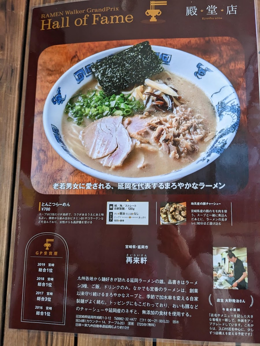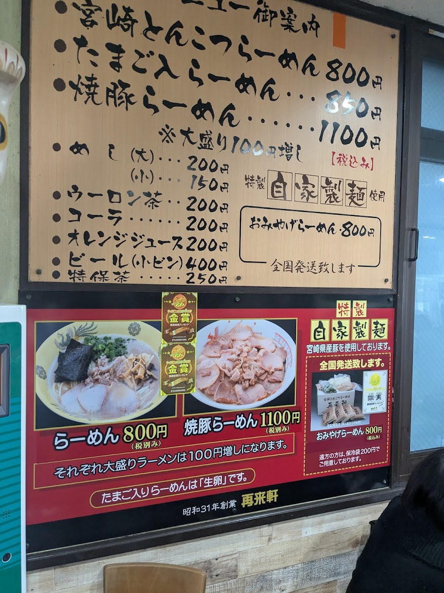 Welcome to Sairai Ken, a beloved ramen shop nestled in the heart of Nobeoka, Miyazaki. Established in 1956, this eatery is famous for its rich pork bone broth, which is the sole flavor offered. Customers rave about its simple yet profound taste, striking a perfect balance that leaves them craving more. The menu primarily features three to four types of ramen, including delicious options like the char siu ramen and a raw egg variation.